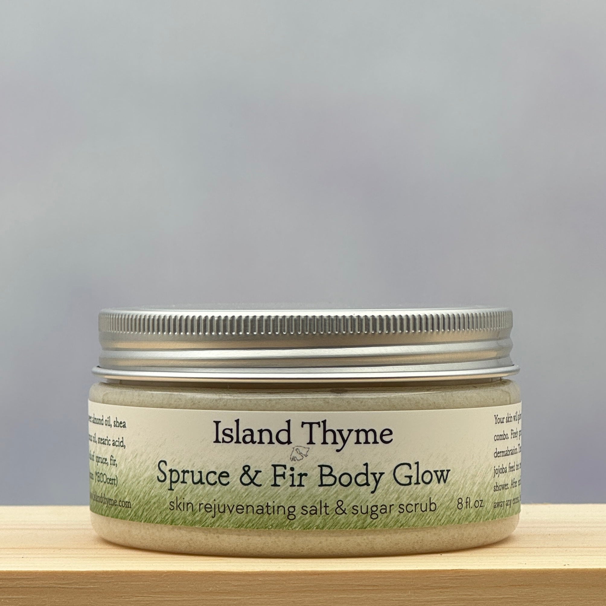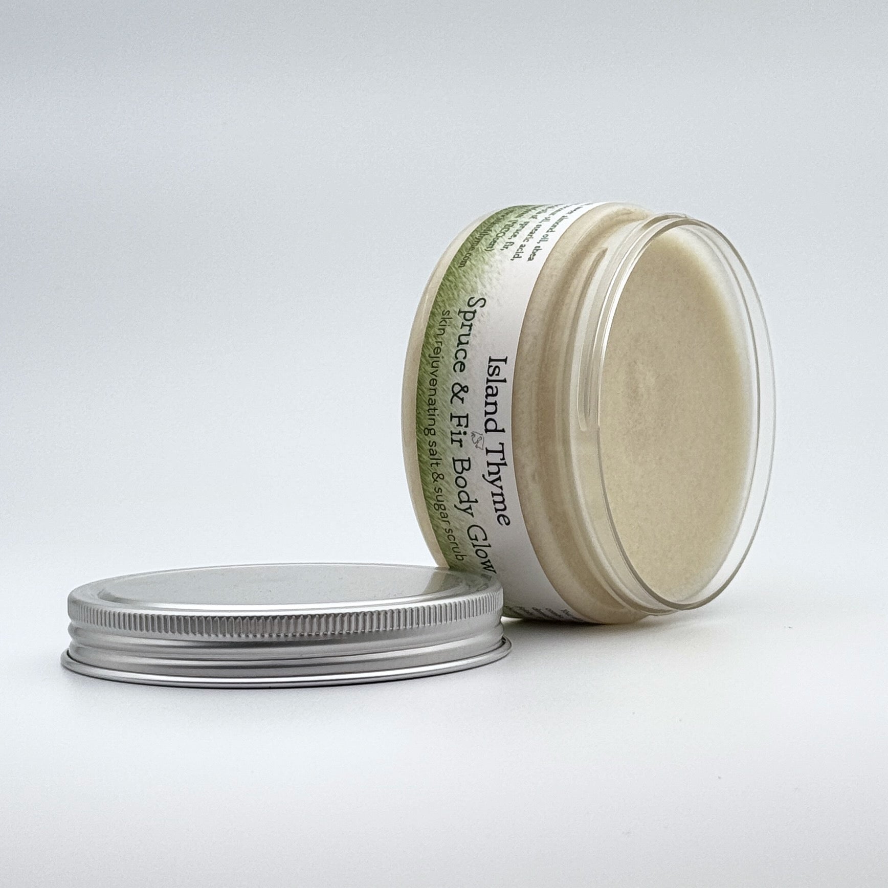 Exfoliate and moisturize with our invigorating Spruce and Fir Body Glow. Your body and spirit will both be renewed.